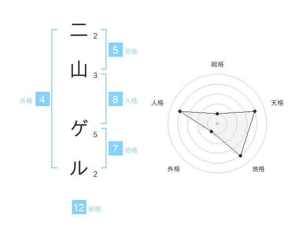 二山 ゲルさんの天格は5画の4点!