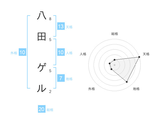 八田 ゲルさんを姓名の画数から五運を鑑定