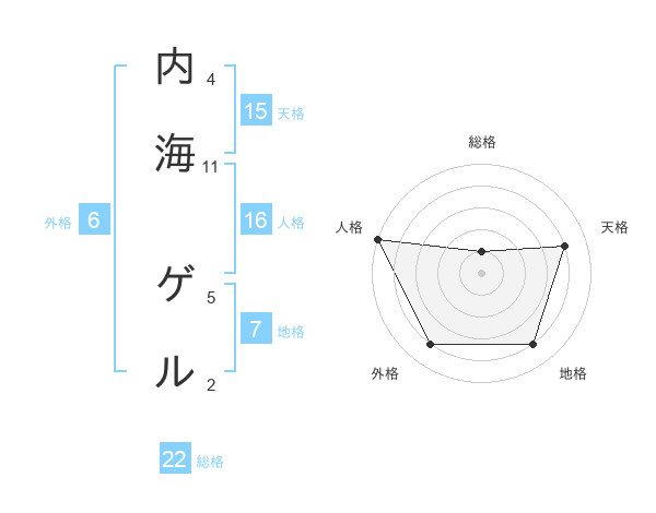 内海 ゲルさんの総格は22画の1点!