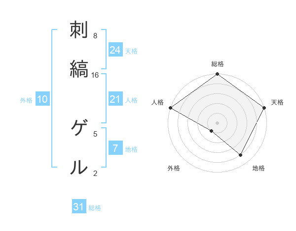 刺縞 ゲルさんの天格は24画の5点!