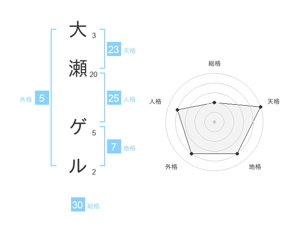 大瀬 ゲルさんを姓名の画数から五運を鑑定