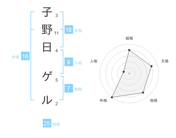 子野日 ゲルさんを姓名の画数から五運を鑑定