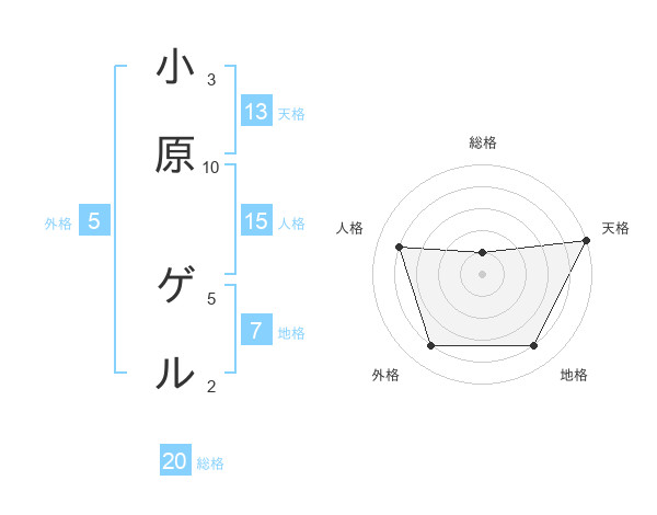 小原 ゲルさんを姓名の画数から五運を鑑定