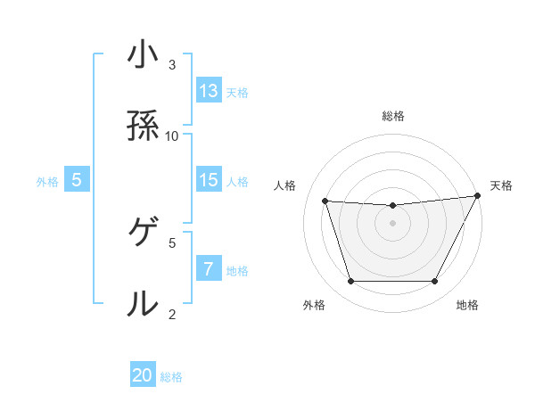 小孫 ゲルさんの天格は13画の5点!