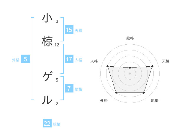 小椋 ゲルさんを姓名の画数から五運を鑑定