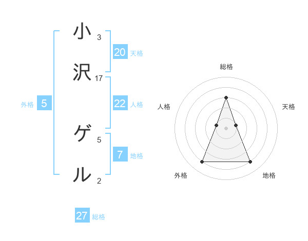 小沢 ゲルさんの総格は27画の3点!