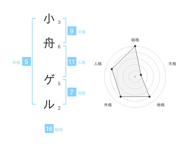 小舟 ゲルさんの総格は16画の5点!