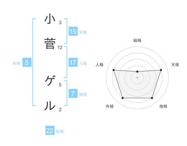 小菅 ゲルさんの天格は15画の4点!