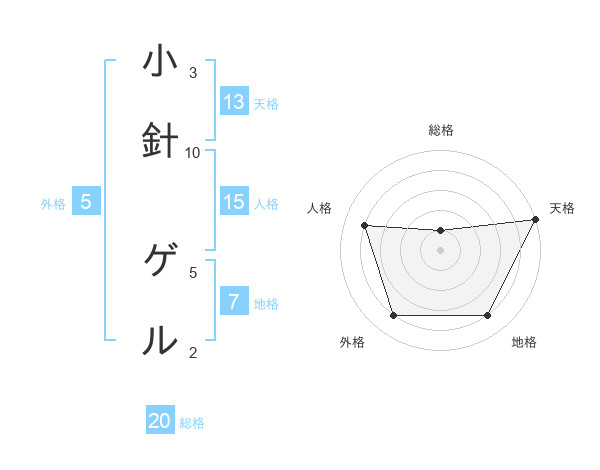 小針 ゲルさんを姓名の画数から五運を鑑定