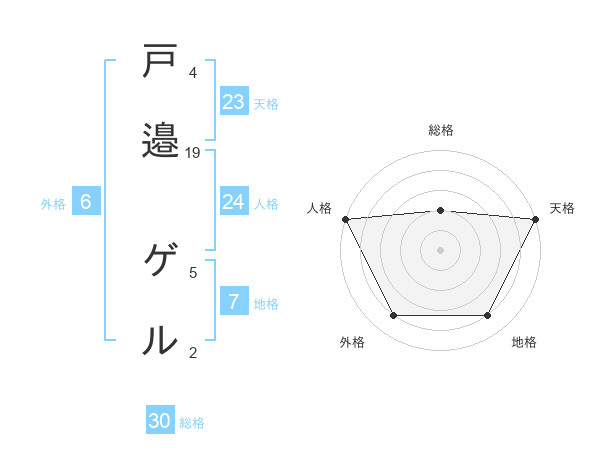 戸邉 ゲルさんを姓名の画数から五運を鑑定