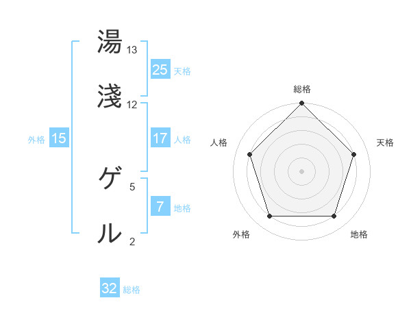 湯淺 ゲルさんの総格は32画の5点!