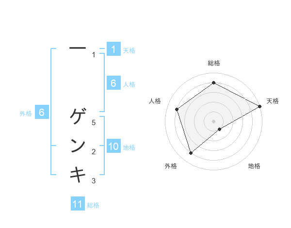 一 ゲンキさんを姓名の画数から五運を鑑定