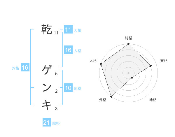 乾 ゲンキさんの総格は21画の5点!