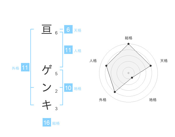 亘 ゲンキさんの総格は16画の5点!