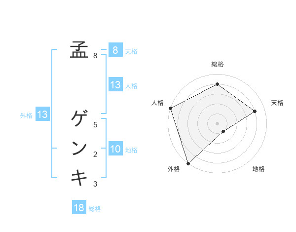 孟 ゲンキさんの外格は13画の5点!
