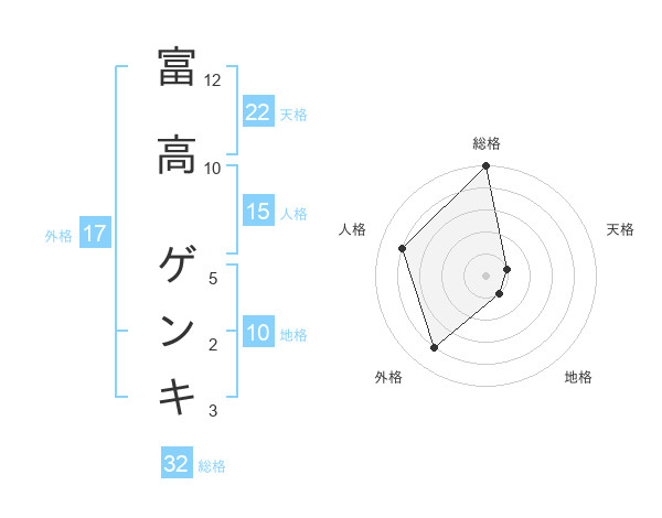富高 ゲンキさんの外格は17画の4点!