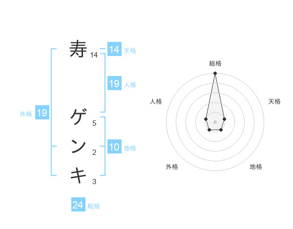 寿 ゲンキさんの総格は24画の5点!