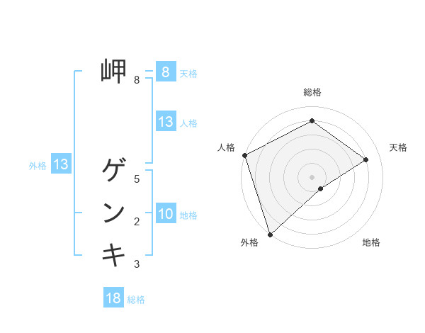 岬 ゲンキさんの外格は13画の5点!