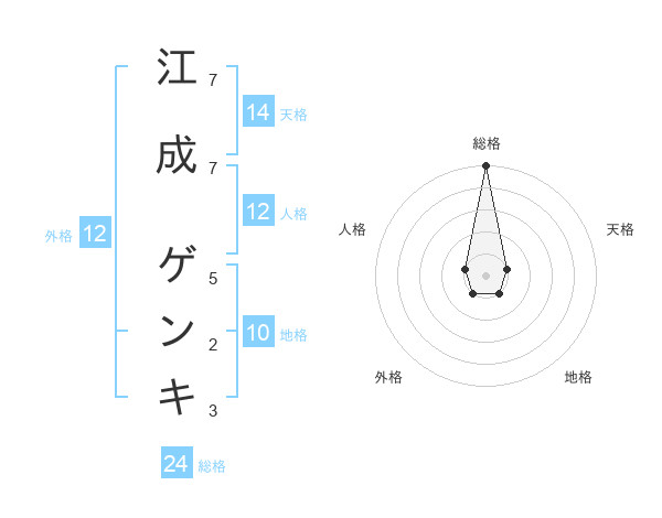 江成 ゲンキさんを姓名の画数から五運を鑑定