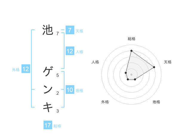 池 ゲンキさんを姓名の画数から五運を鑑定