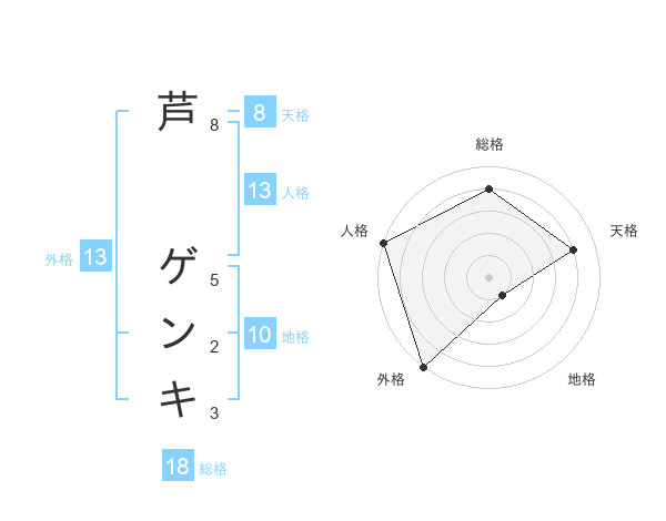 芦 ゲンキさんを姓名の画数から五運を鑑定