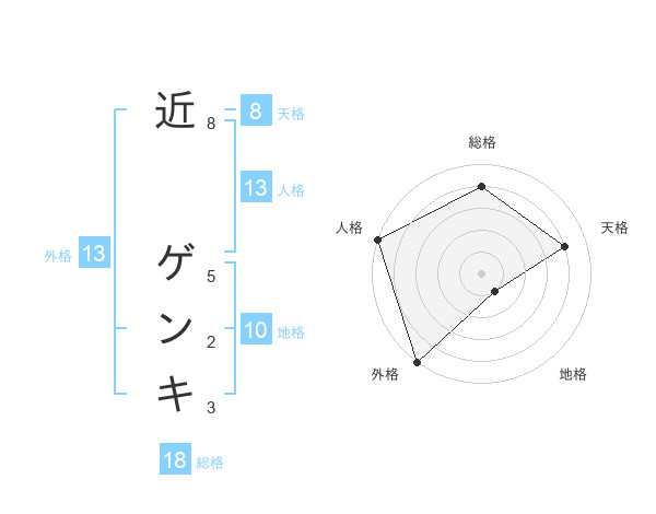 近 ゲンキさんを姓名の画数から五運を鑑定