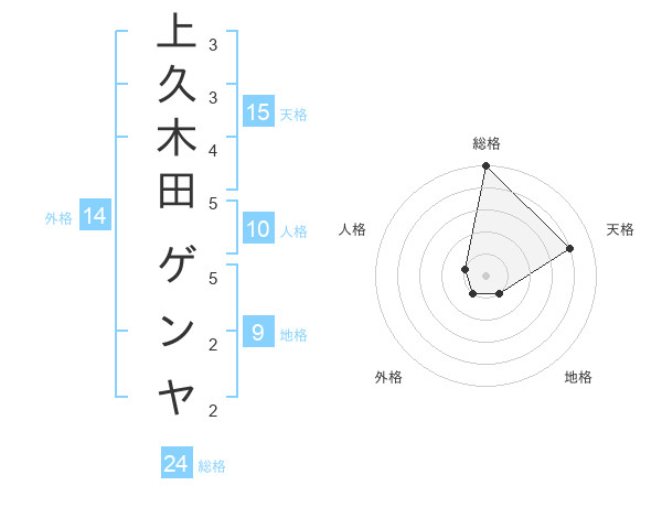 上久木田 ゲンヤさんの総格は24画の5点!