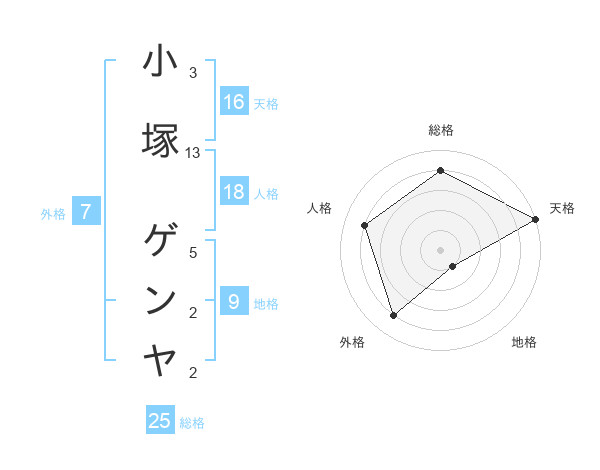 小塚 ゲンヤさんを姓名の画数から五運を鑑定