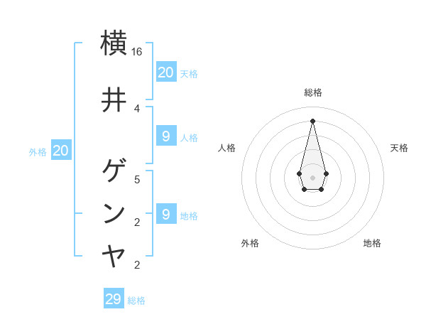 横井 ゲンヤさんを姓名の画数から五運を鑑定