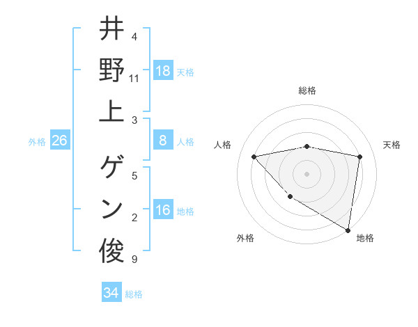 井野上 ゲン俊さんを姓名の画数から五運を鑑定