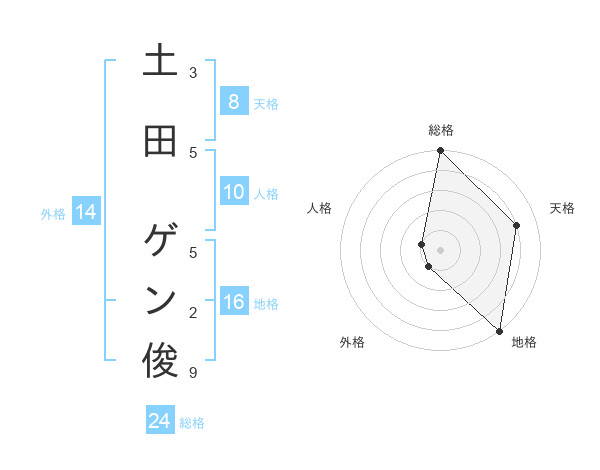 土田 ゲン俊さんを姓名の画数から五運を鑑定