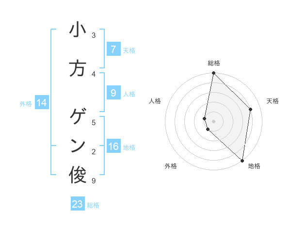 小方 ゲン俊さんの総格は23画の5点