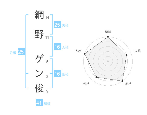 網野 ゲン俊さんの総格は41画の5点