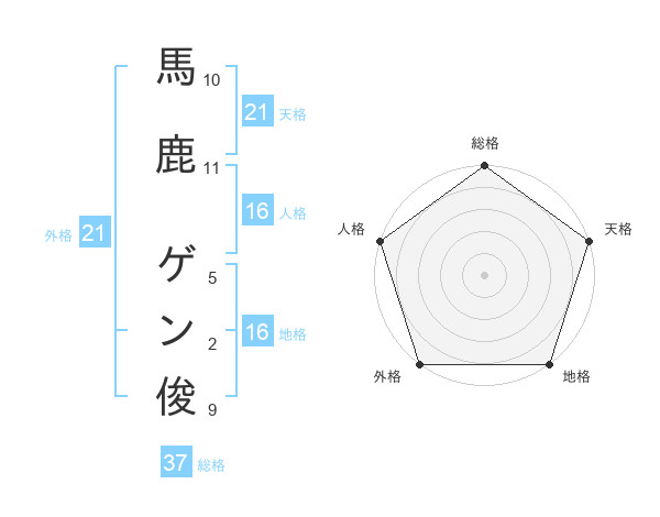 馬鹿 ゲン俊さんの天格は21画の5点!