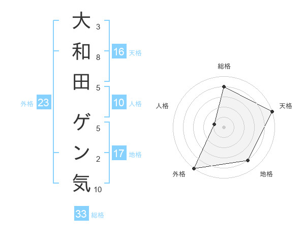 大和田 ゲン気さんを姓名の画数から五運を鑑定