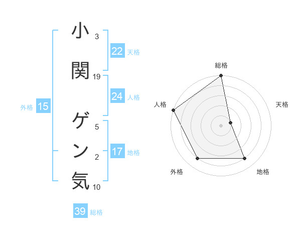 小関 ゲン気さんを姓名の画数から五運を鑑定