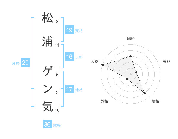 松浦 ゲン気さんを姓名の画数から五運を鑑定