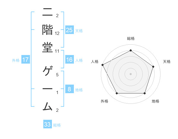 二階堂 ゲームさんを姓名の画数から五運を鑑定