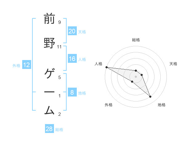 前野 ゲームさんを姓名の画数から五運を鑑定