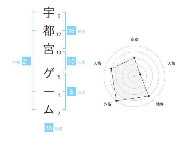 宇都宮 ゲームさんの人格は15画の4点!