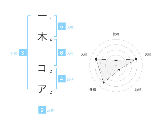 一木 コアさんの総格は9画の1点!