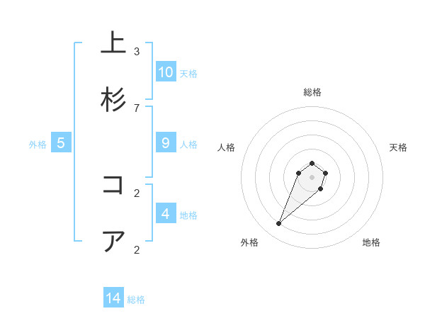 上杉 コアさんの総格は14画の1点!
