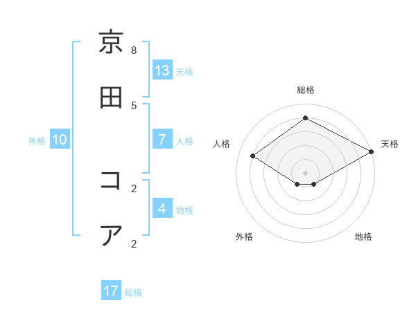 京田 コアさんの総格は17画の4点!
