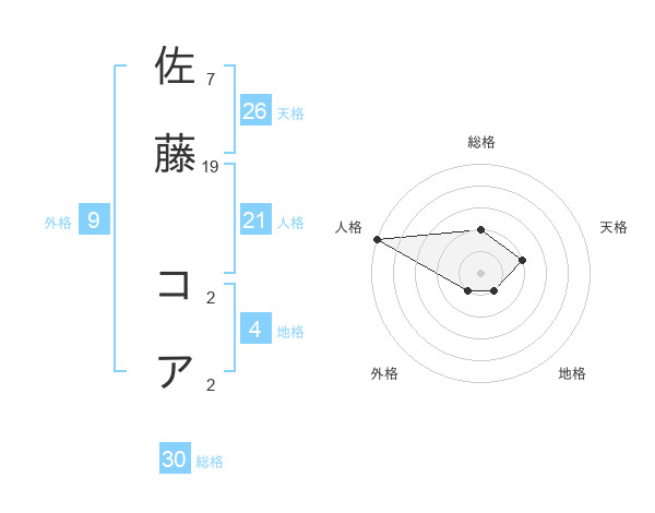 佐藤 コアさんを姓名の画数から五運を鑑定