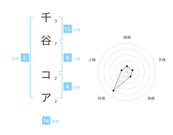 千谷 コアさんの総格は14画の1点!