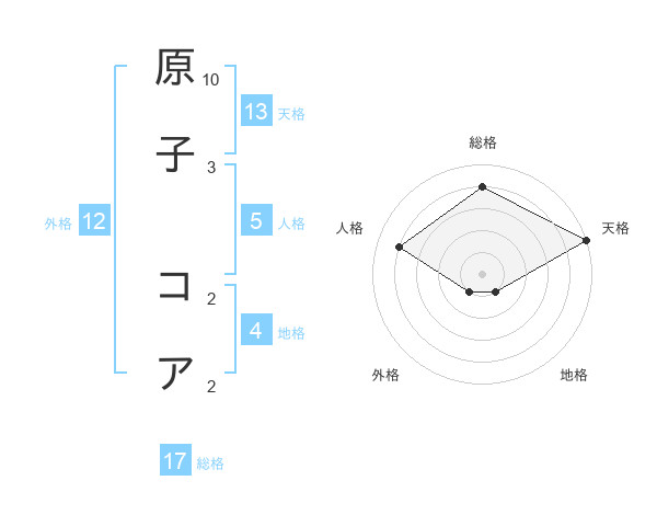 原子 コアさんの総格は17画の4点!