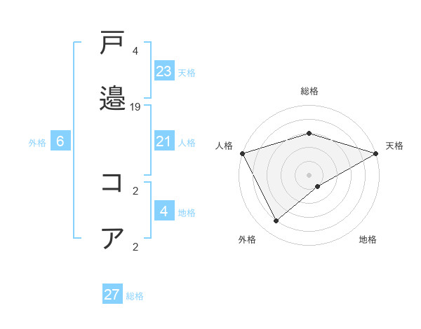 戸邉 コアさんの総格は27画の3点!