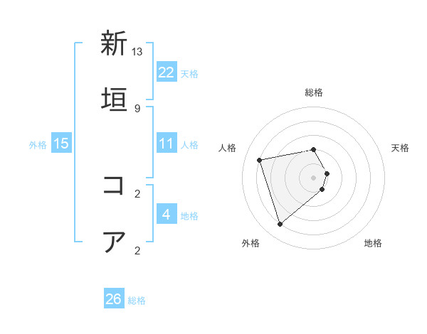 新垣 コアさんの天格は22画の1点!