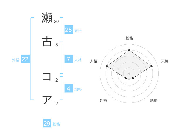 瀬古 コアさんを姓名の画数から五運を鑑定