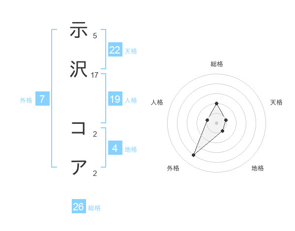 示沢 コアさんの総格は26画の2点!